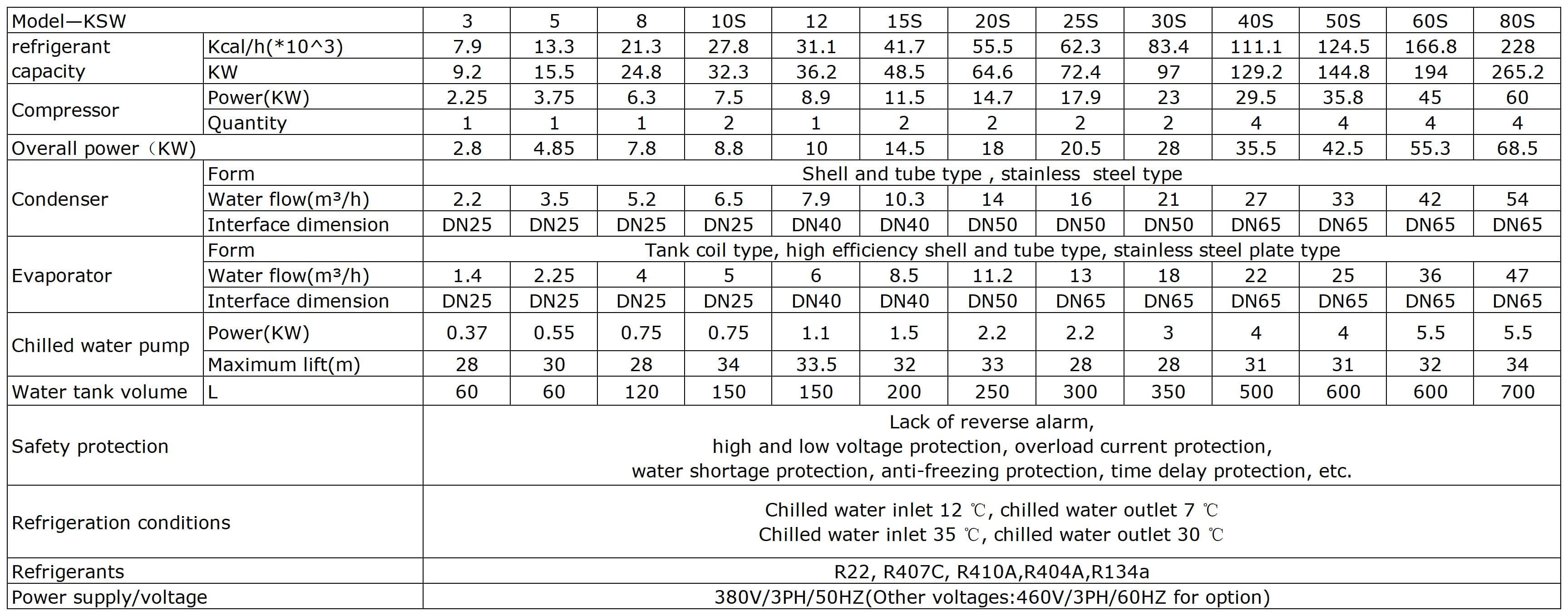 Type: 40 tons of water-cooled chiller, 40 tons of air-cooled chiller.